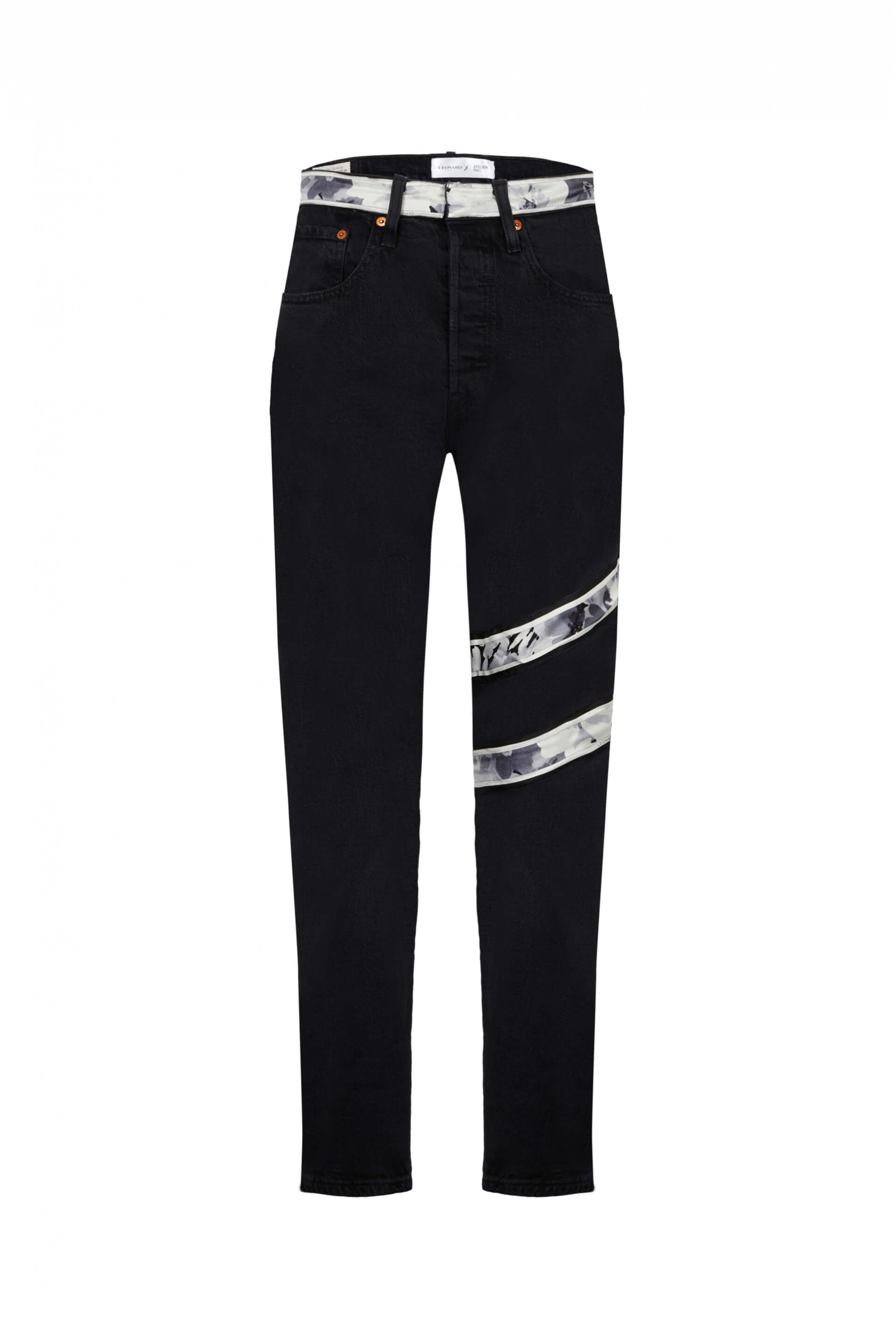Upcycled jeans. Unique piece customised with silk jersey fabrics from the Leonard archives. 100% Made In Paris. Length: 106cm; Hip measurement: 106cm; Waist measurement (low): 78cm - Non-stretch - 100% cotton