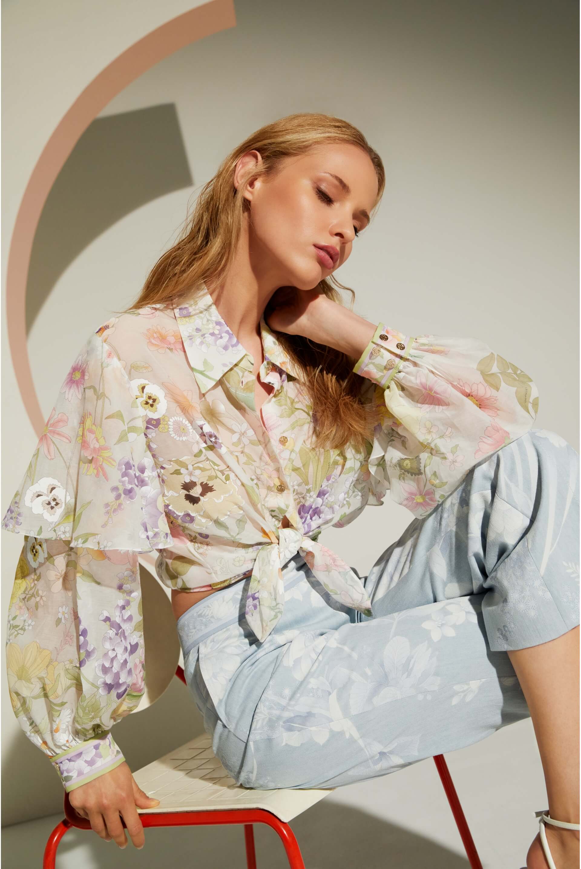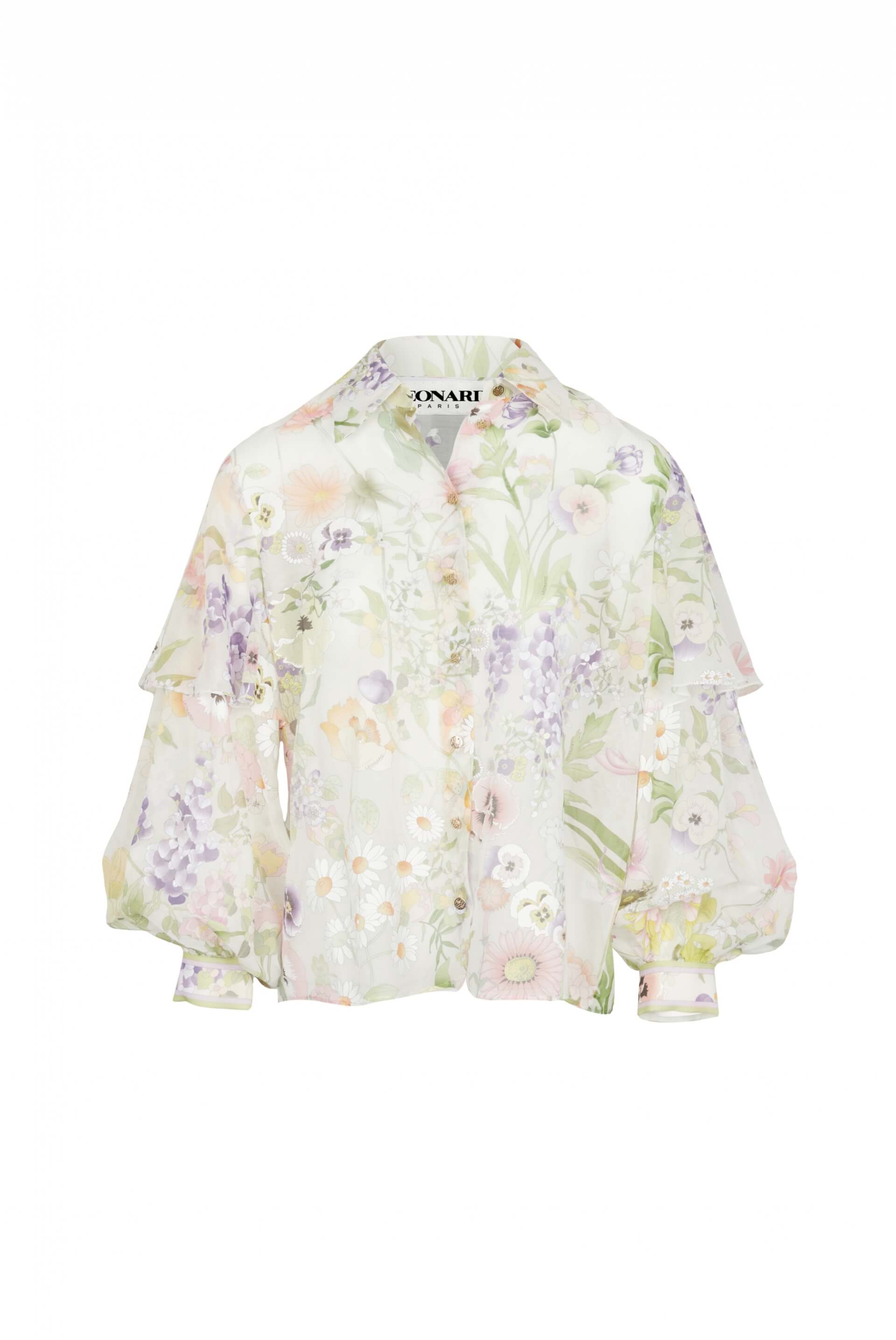 Shirt with ruffled sleeves. French sizes. Made in Italy.