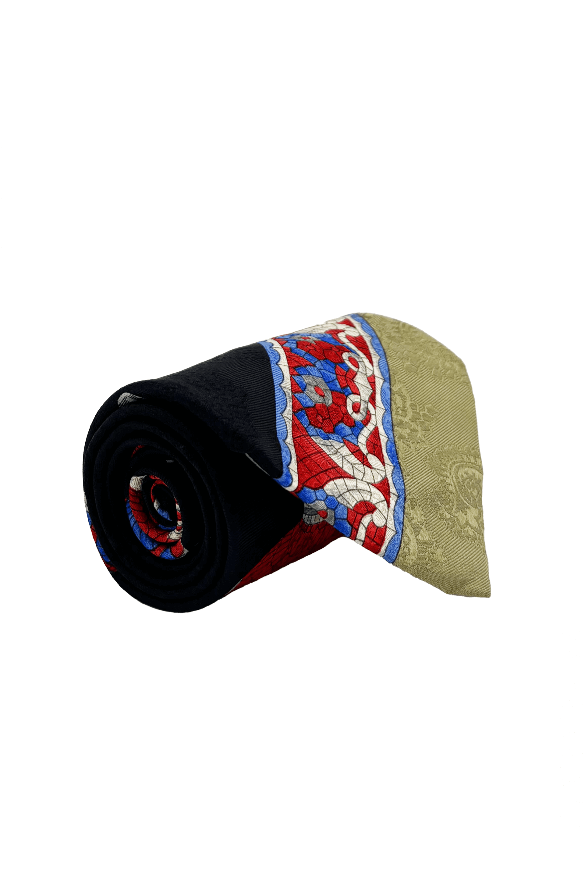 Cravate vintage en pure soie des années 2000 avec un motif unique qui capture l'esprit de l'époque