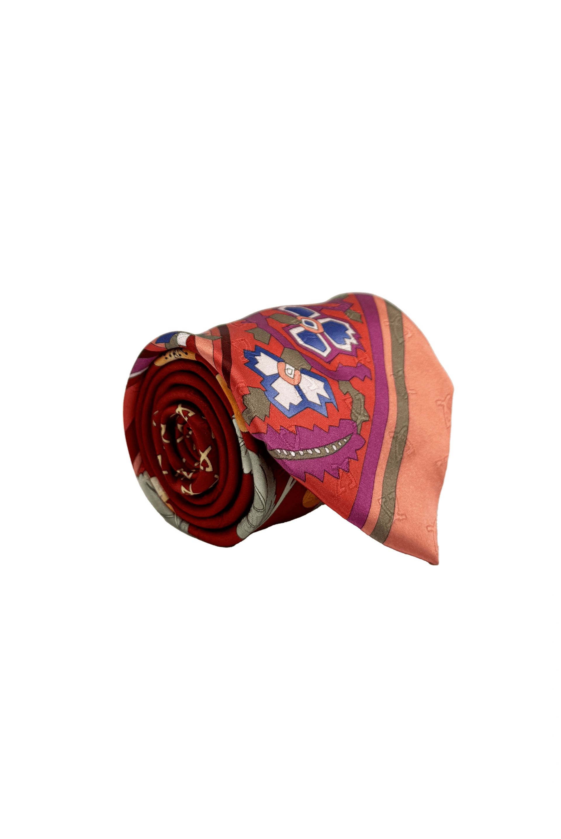 Cravate vintage en pure soie des années 2000 avec un motif unique qui capture l'esprit de l'époque