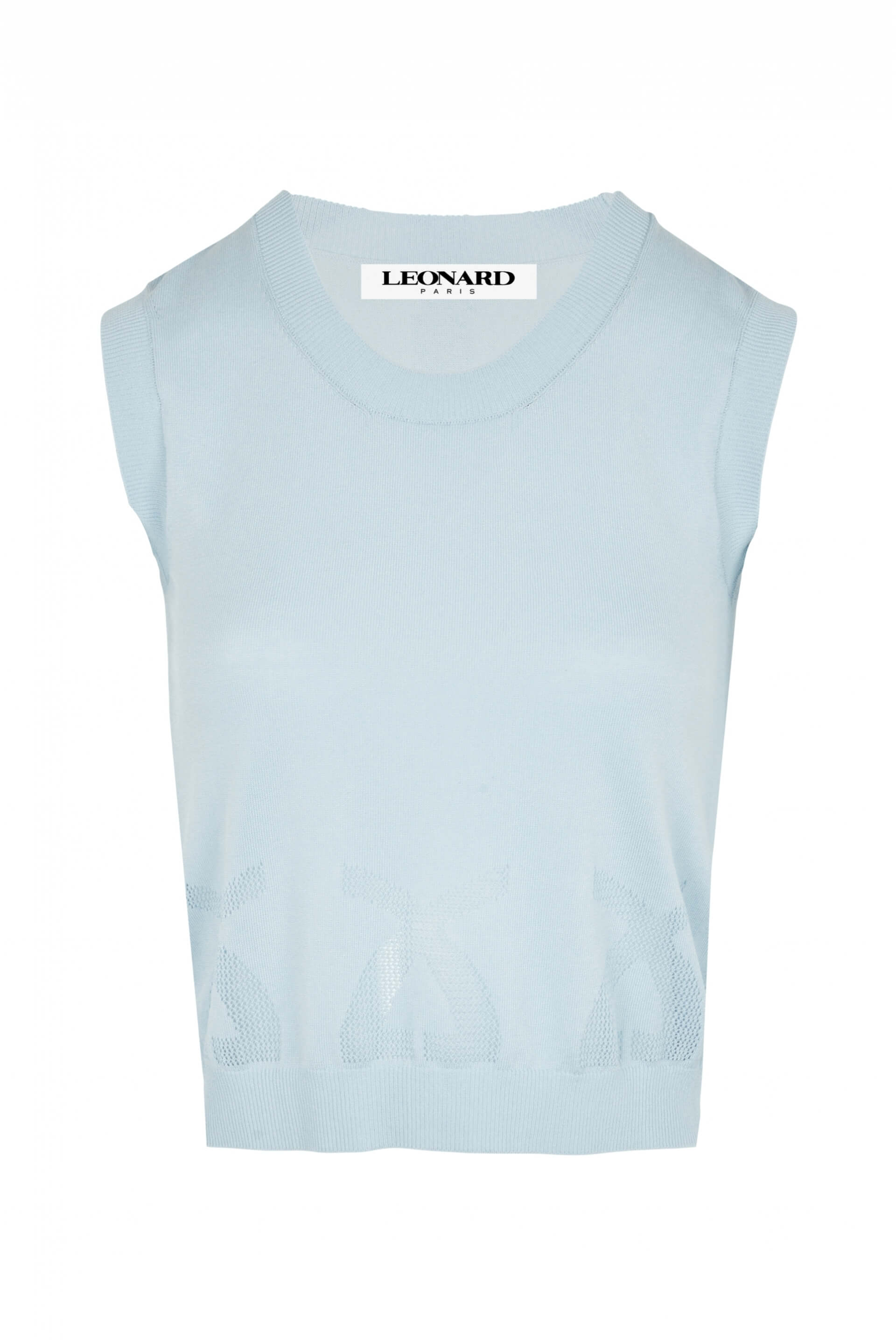 Top débardeur en maille unie à détails logo Leonard . Tailles françaises. Fabriqué en Italie.