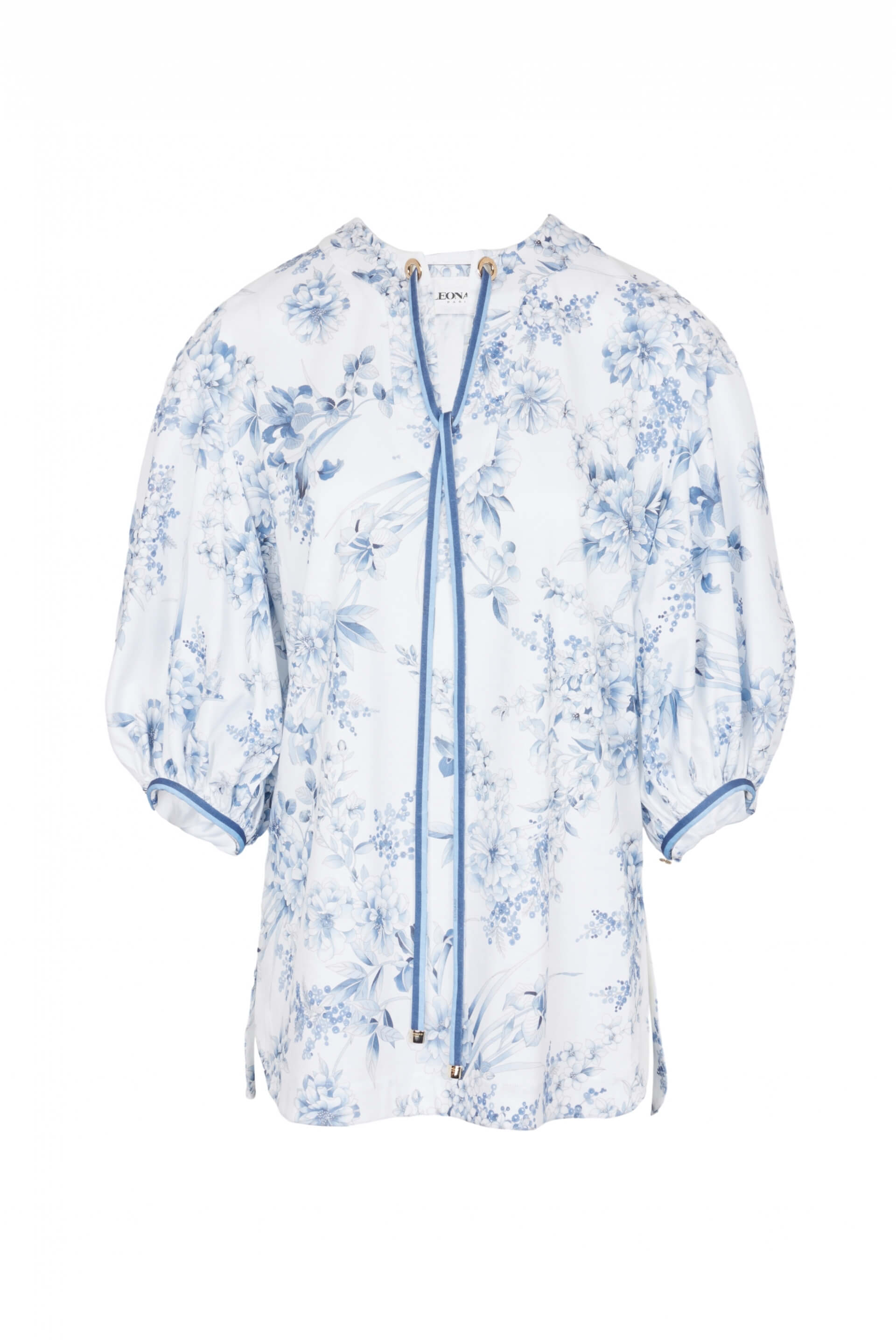 Tunique imprimée en coton dôtée de manches 3/4. Longueur asymétrique. Longueur avant : 69 cm. Longueur arrière : 76 cm. Tailles françaises. Fabriquée en Italie.