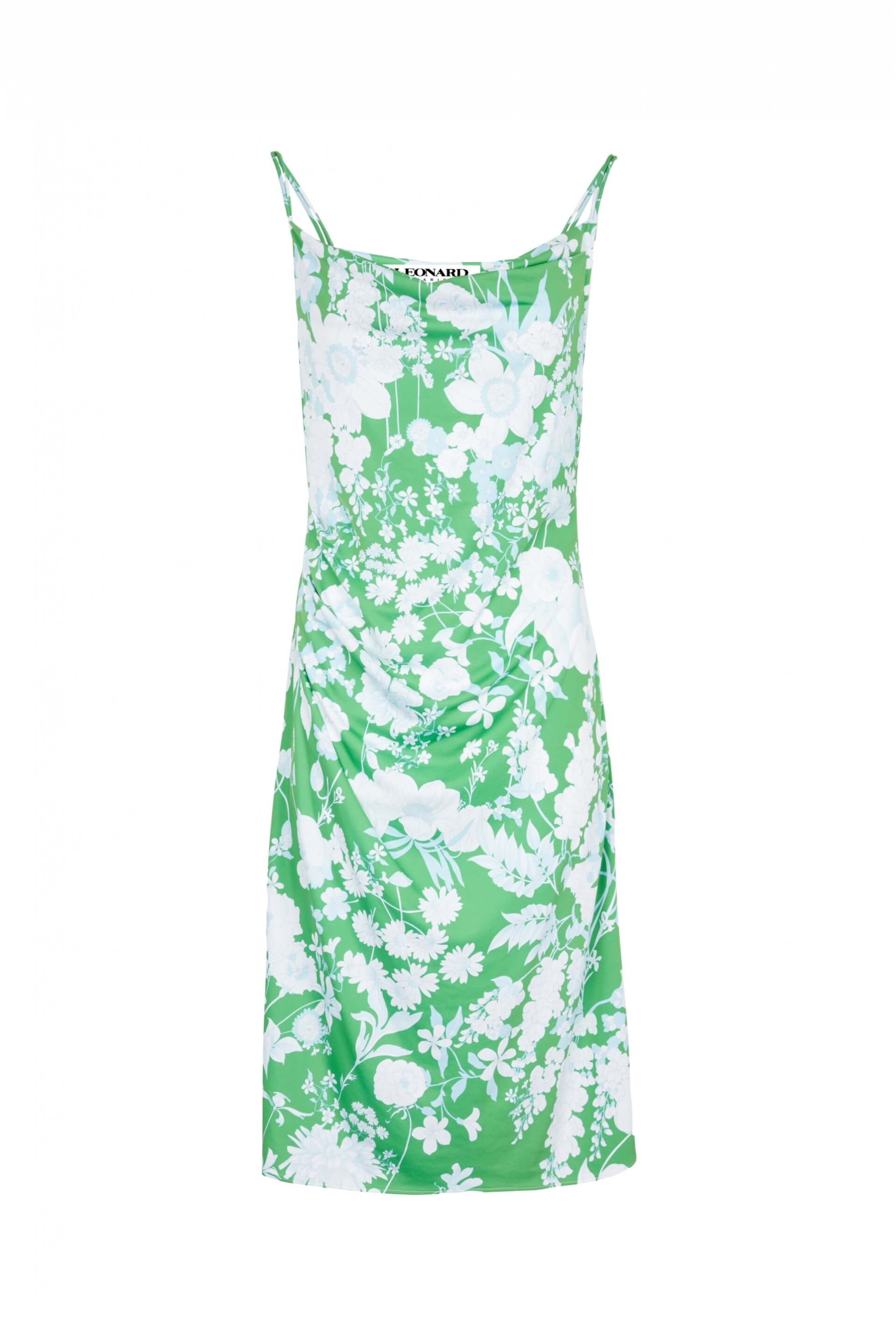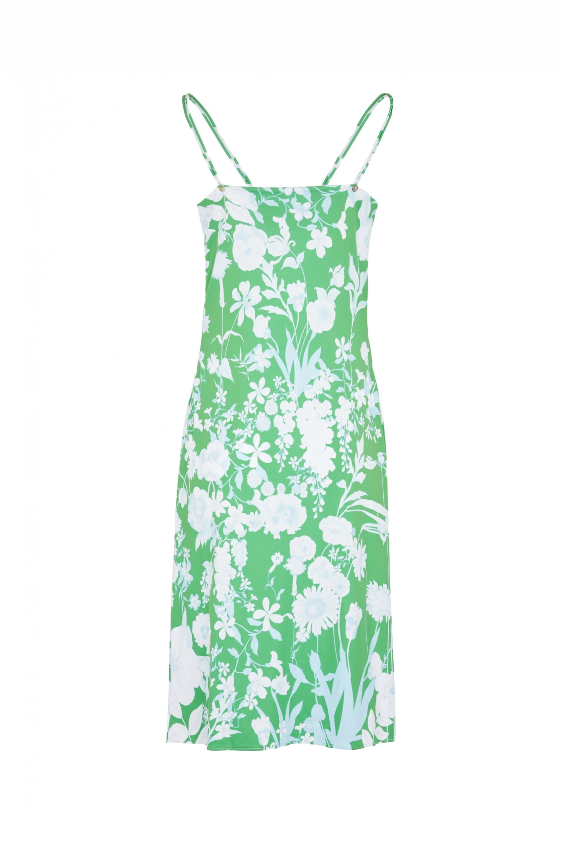 Robe débardeur en polyamide à imprimé fleuri rose. Tailles françaises. Fabriqué en Italie.