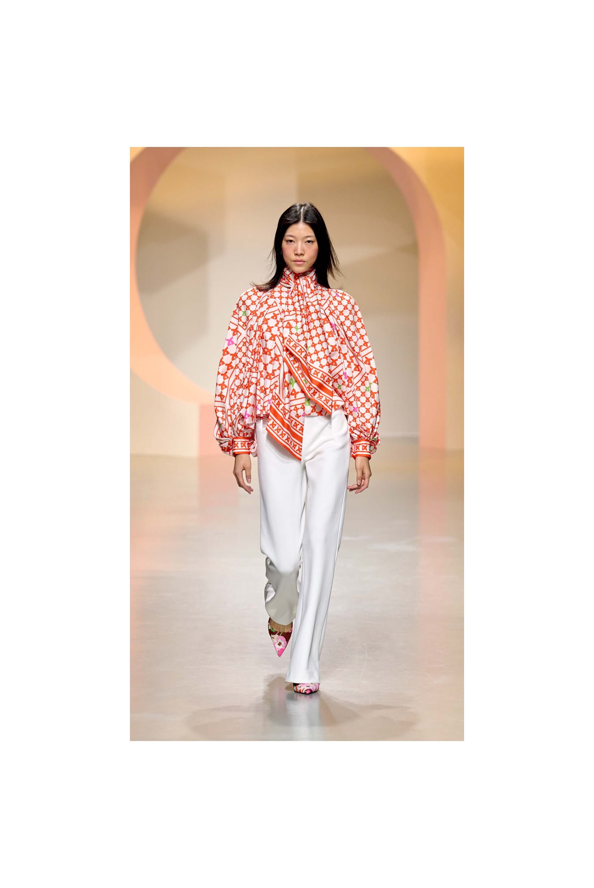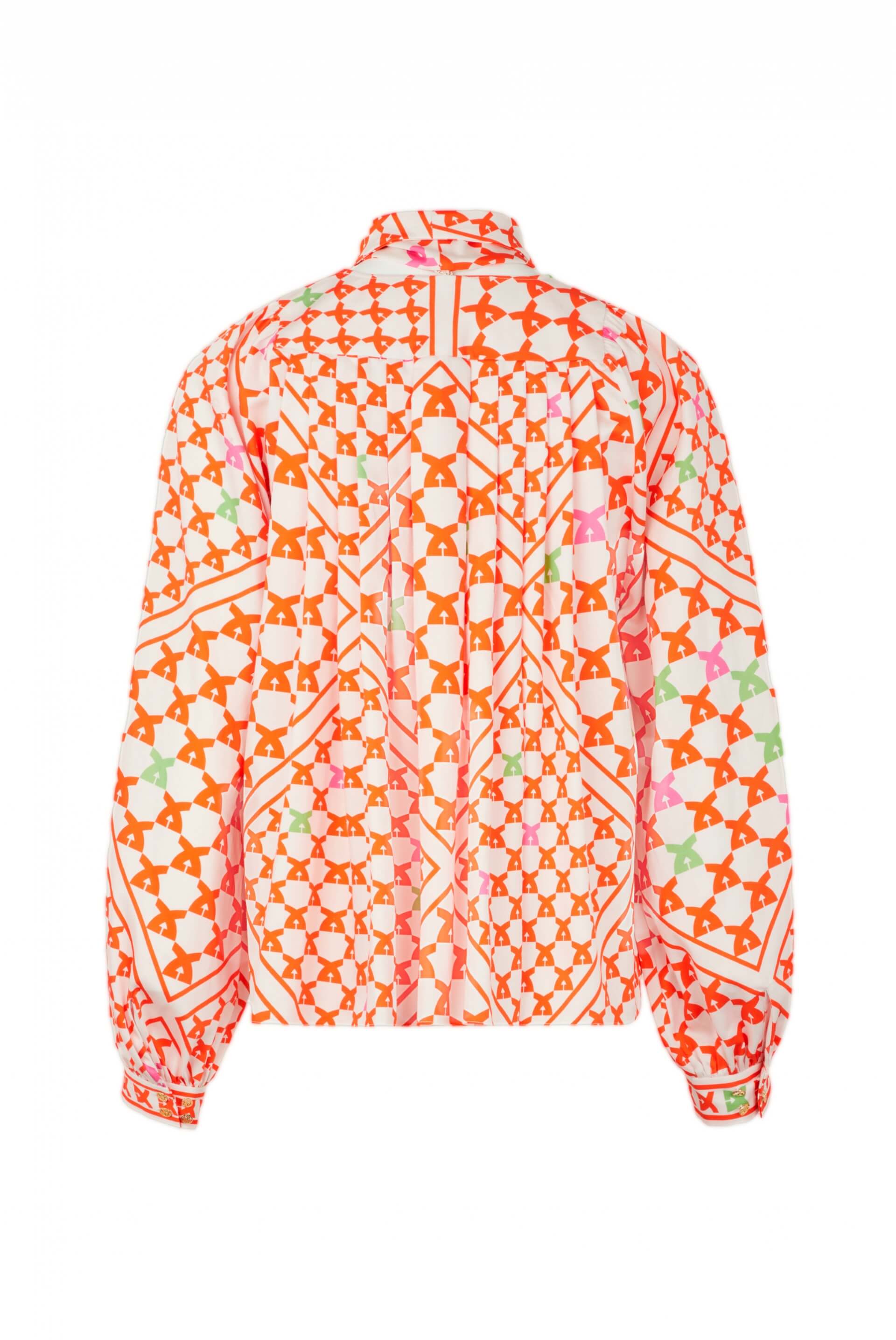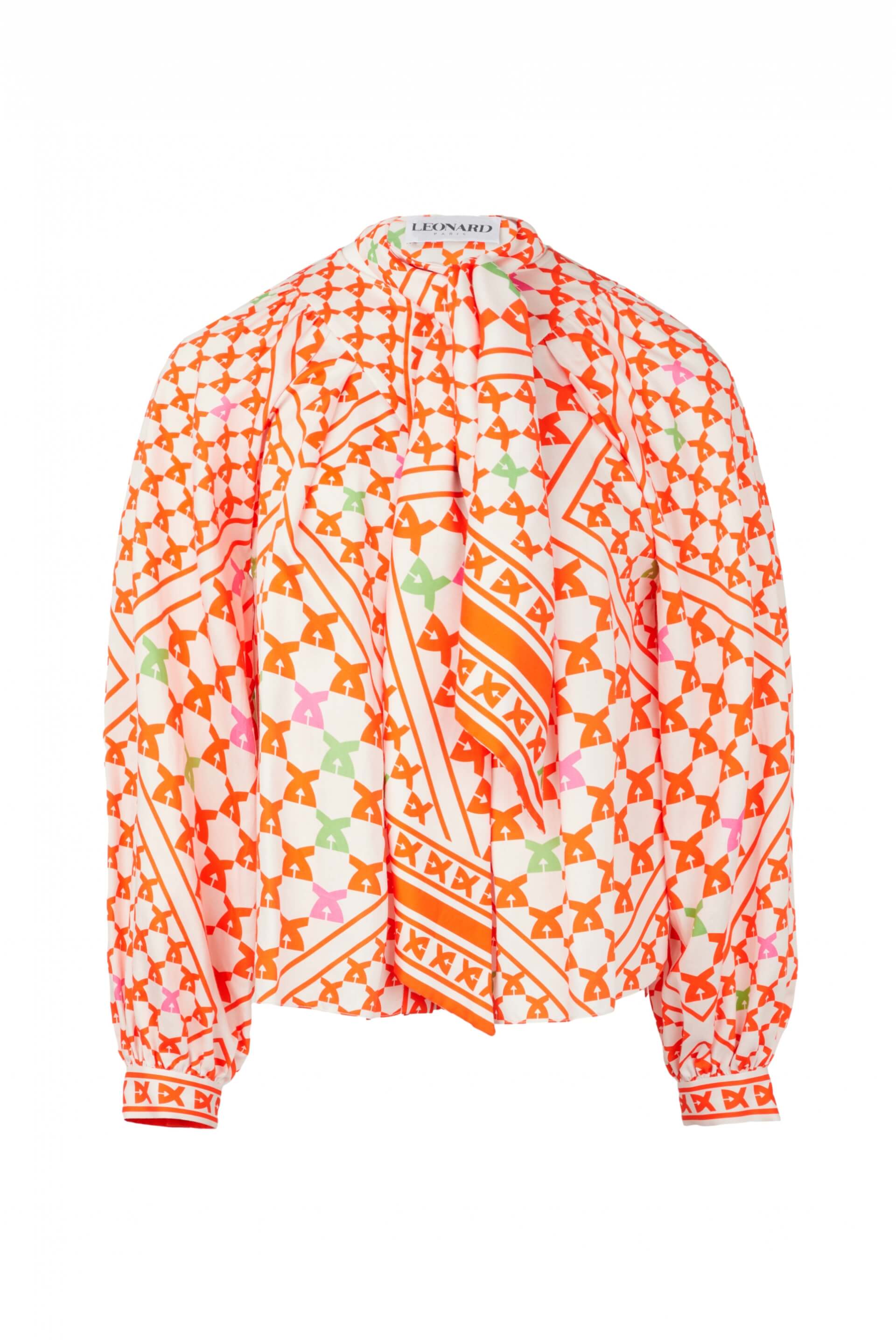 Chemisier en popeline de coton imprimé du logo LEONARD historique entrelacés, de tailles et couleurs différentes. Tailles françaises. Fabriqué en Italie.
