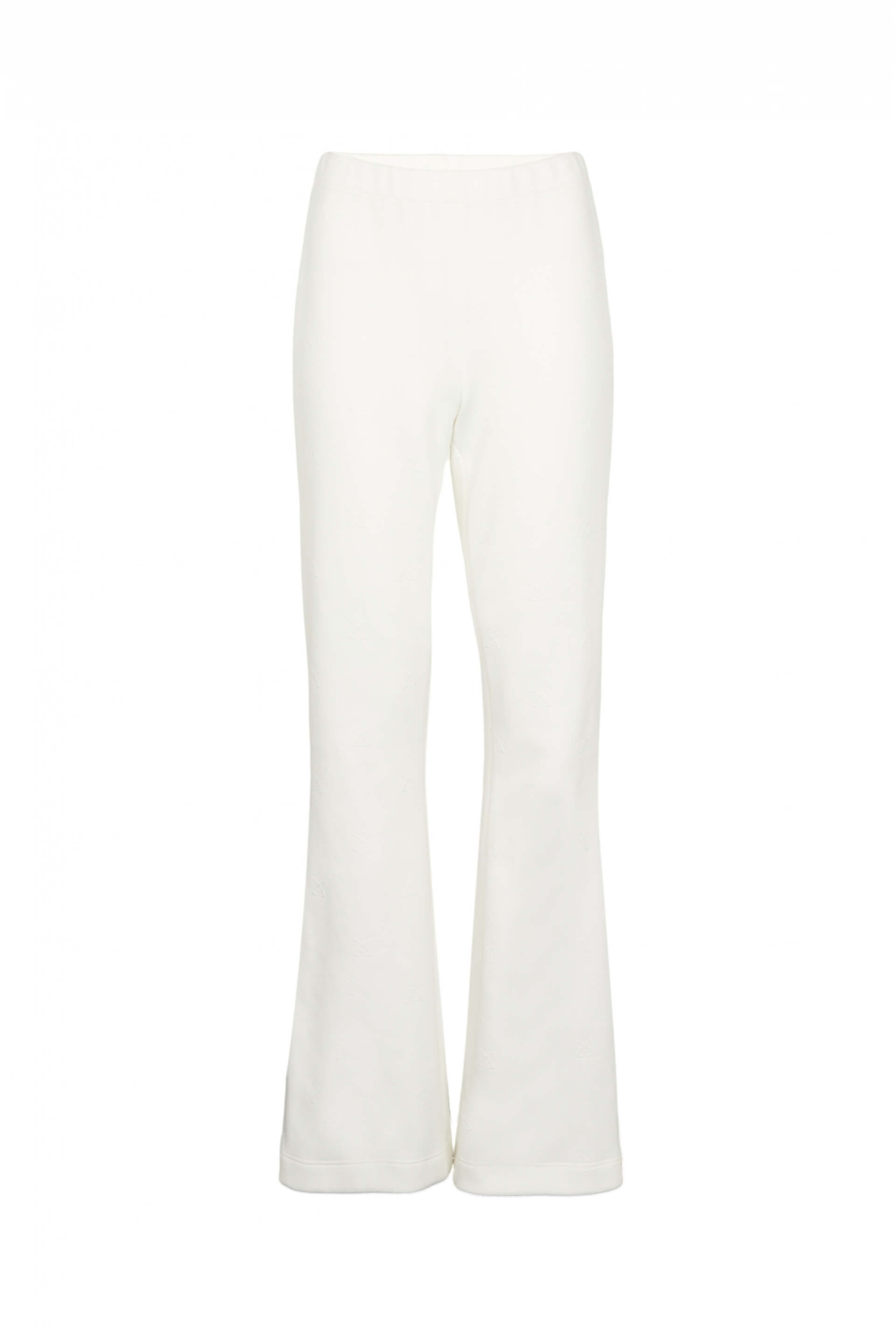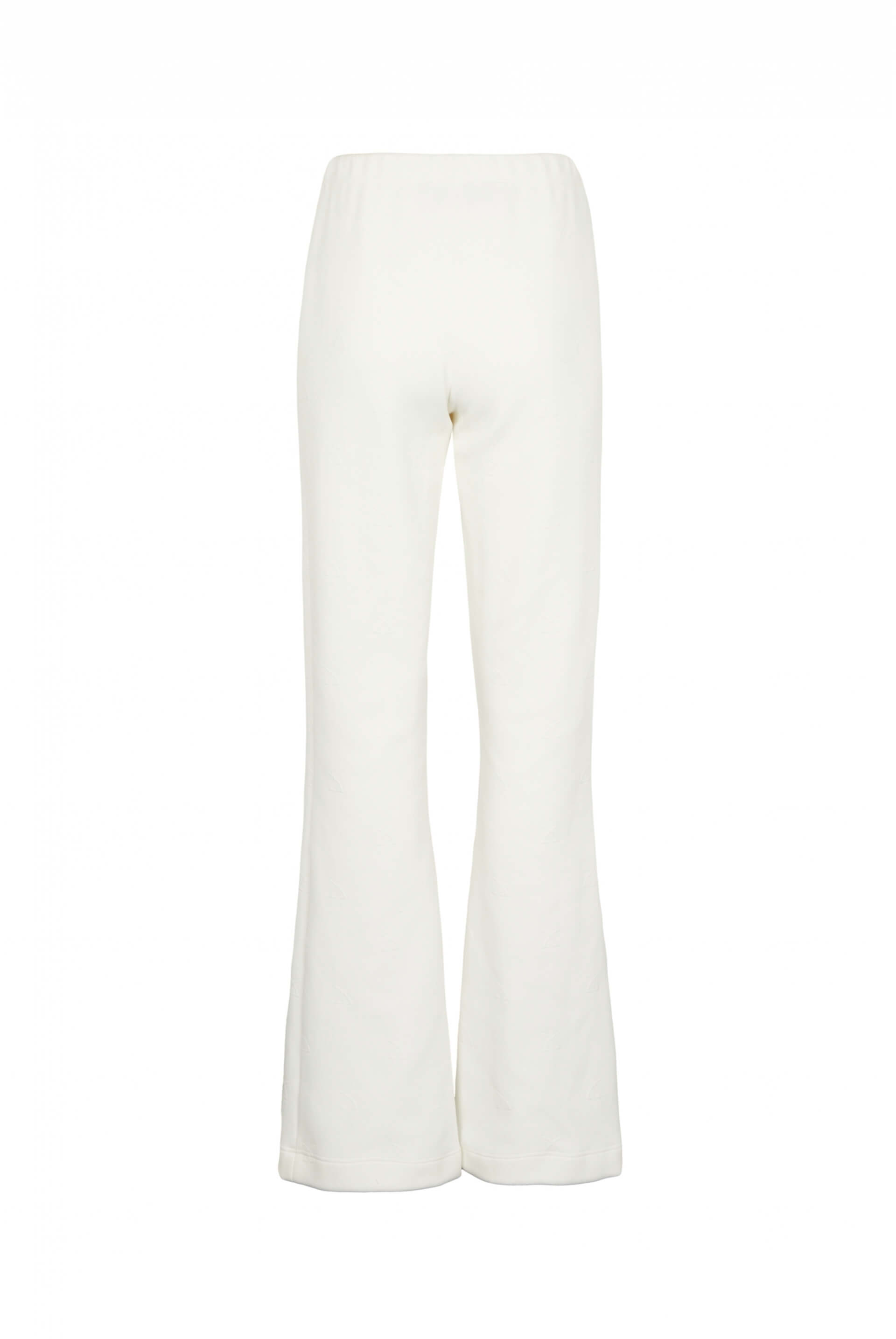 Pantalon long évasé à taille élastique. Longueur : 113cm. Tailles françaises. Fabriqué en Italie.