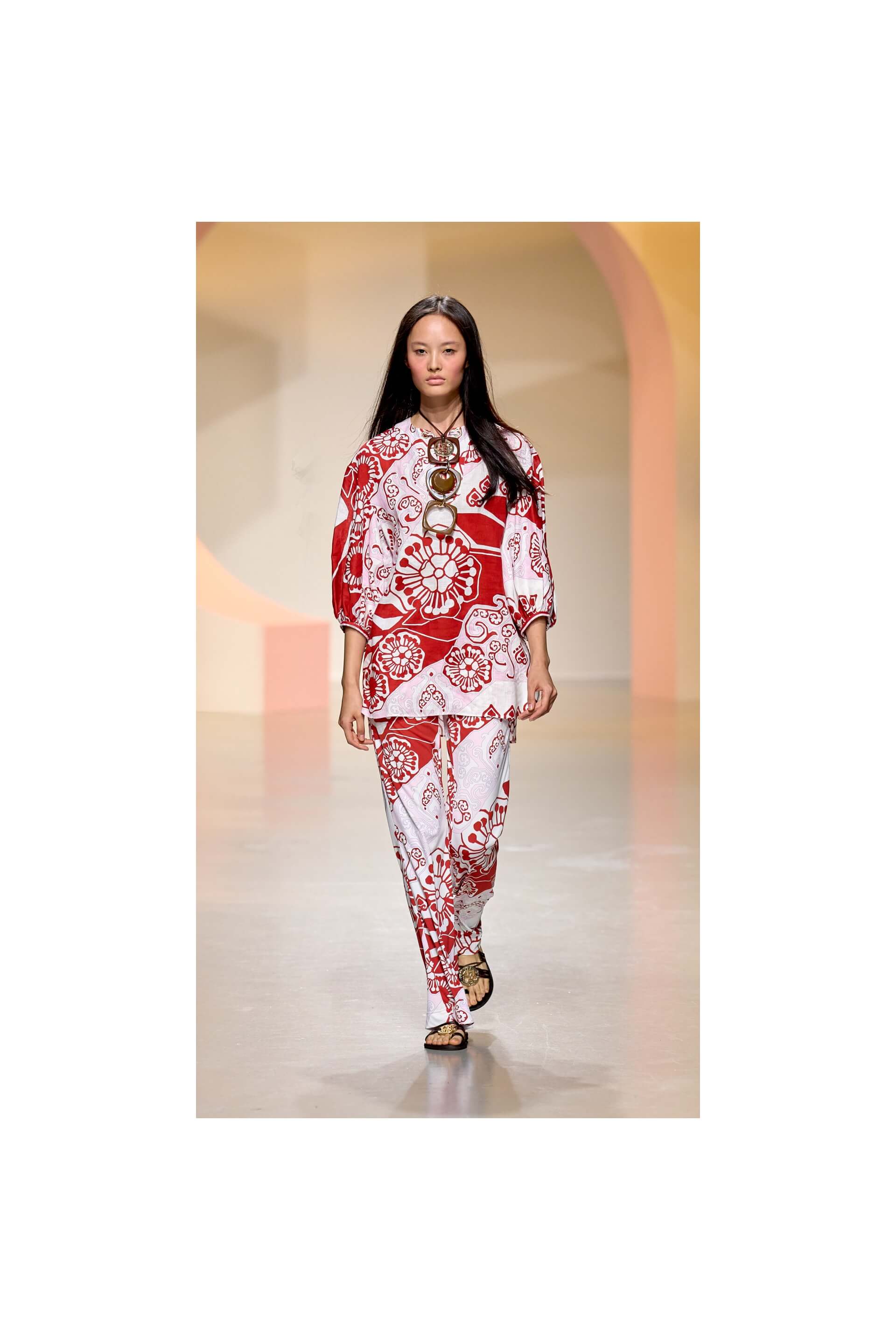 Pantalon imprimé évasé. Taille élastique. Tailles françaises. Fabriqué en Italie.