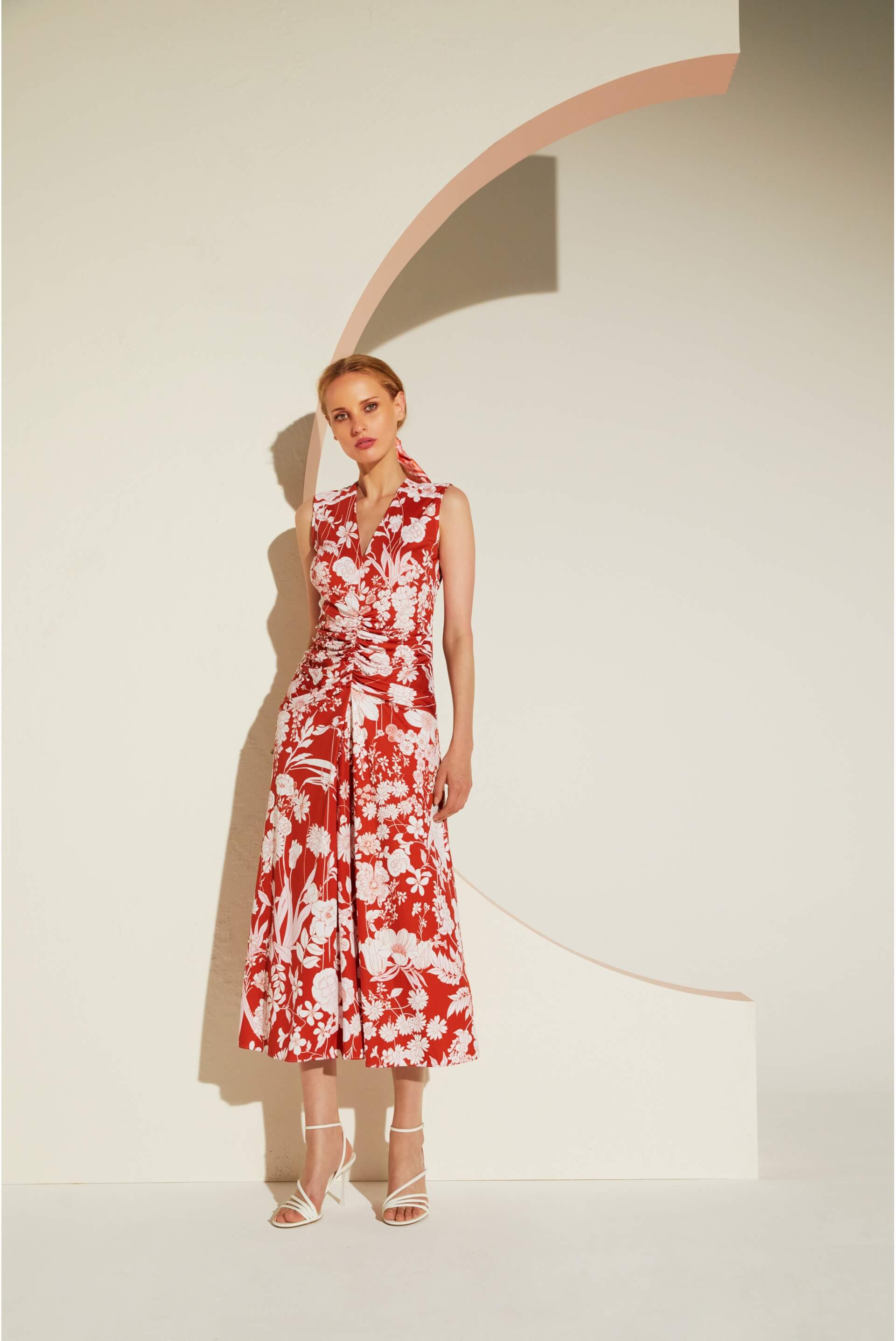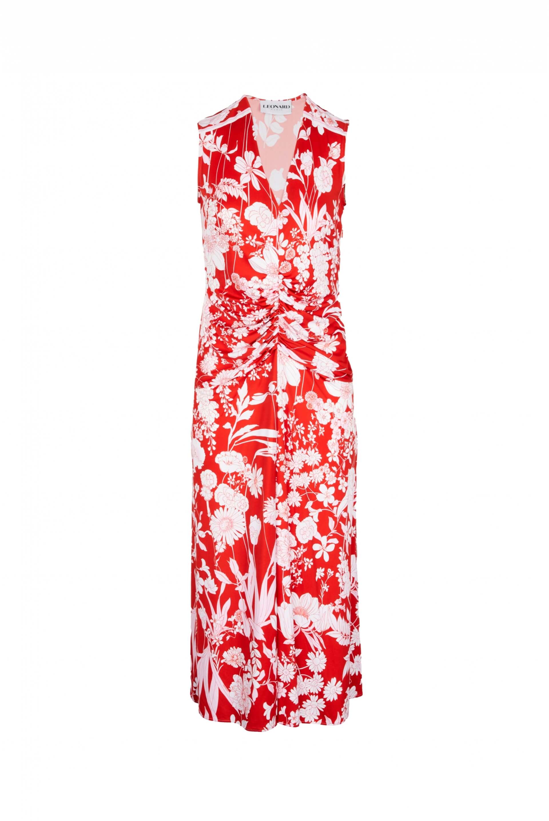 Robe débardeur mi-longue froncée sur le devant. Longueur : 130 cm. Tailles françaises. Fabriquée en Italie.